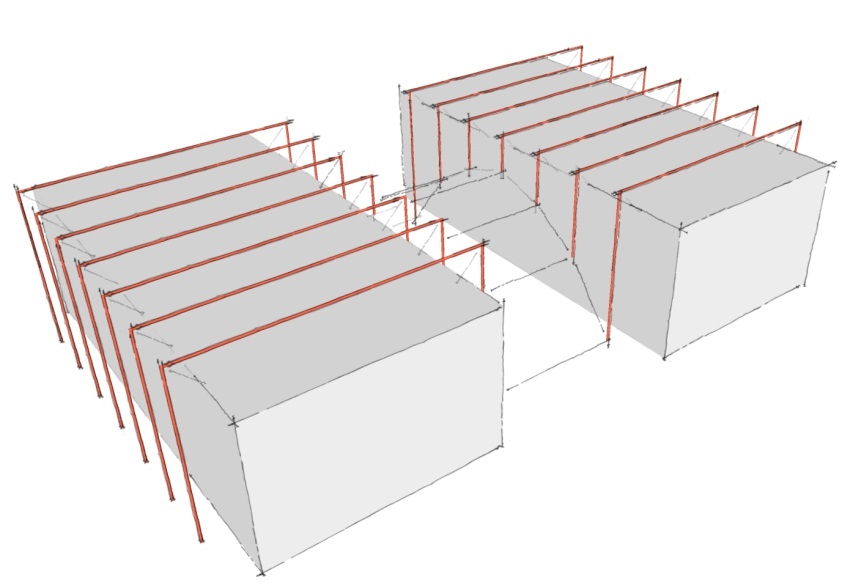 برای بررسی این موضوع لازمه ابتدا با سازه ی بنا آشنا بشیم. برای خلاصه تر شدن و فهم بهتر سعی کردم داخل sketchup مدل سازی ساده ای رو انجام بدم. (تصاویر مربوط به مدل به خاطر رزولیشن بالا کمی تار مشخص شدن برای دیدن بهتر تصاویر رویشان جداگانه کلیک کنید.) در قسمت دوم مطلب هم سعی کردم به بررس یارزش های آموزشی و غنای مفهومی پروژه بپردازم و نقش آموزشی اون رو نشان بدم.