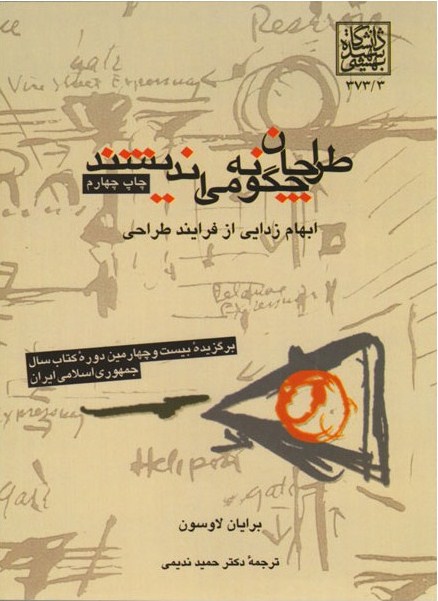 1- عنوان کامل کتاب اینه:"طراحان چگونه می اندیشند ابهام زدایی از فرایند طراحی- مولف:برایان لاوسن –ترجمه:دکتر حمید ندیمی-انتشارات دانشگاه شهید بهشتی که البته اخیرا دو سه تا انتشارات و مترجم دیگه هم اقدام به انتشارش کردن که چندان چنگی به دلم نزد و فکر می کنم این بهترین ترجمه و نشر کتاب باشه.